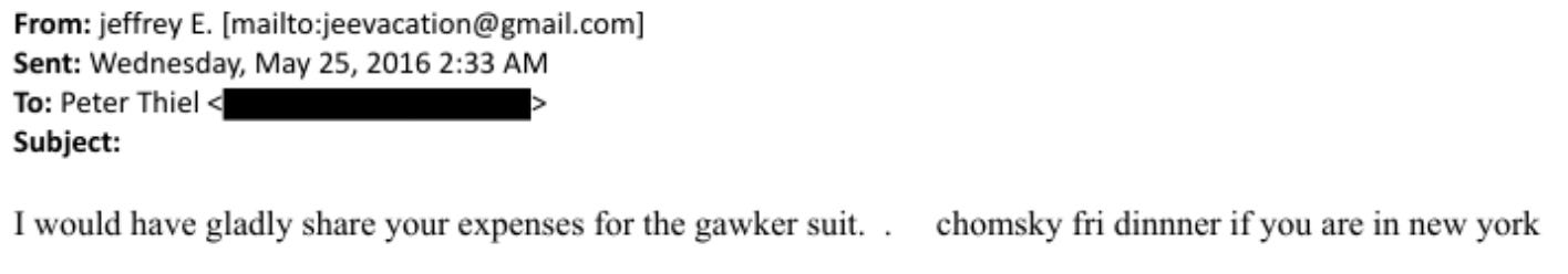 Epstein sent Thiel this message a few weeks later: