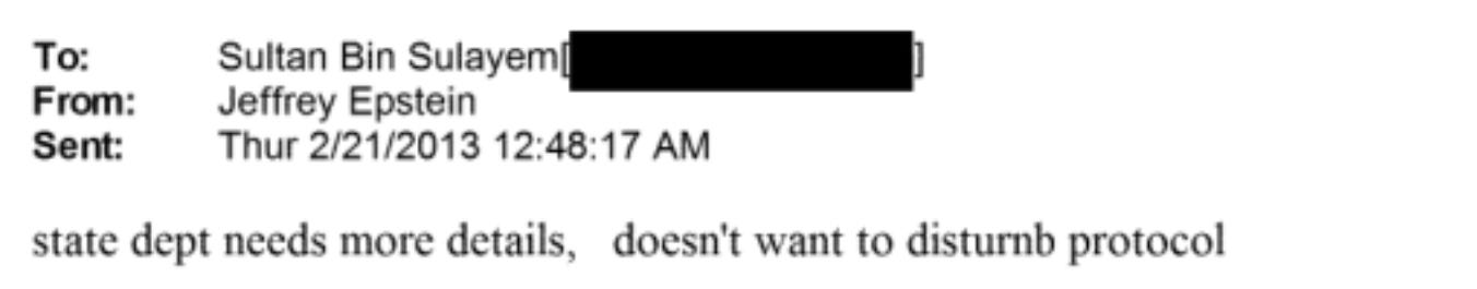 His pals clearly thought he had deep access to the U.S. State Department: In 2013 his powerful friend and frequent correspondent Emirati businessman Sultan bin Sulayemman, asked Jeff to help him meet with recently-appointed Secretary of State John Kerry during an upcoming trip to the UAE. Epstein replied that “state dept needs more details, doesnt want to disturnb [sic] protocol.”