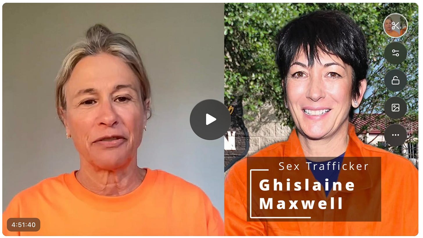 Now that Rep. James Comer has indicated that some Republicans are ready to PARDON Maxwell (cue: political ploy to spread blame from Trump alone) independent journalist Scott Carney at Magnetic North and I decided to record ourselves reading the entire two day transcript. We worked hard to stay in character (I snagged an orange t shirt and was sick that day, so rocking an authentic inmate look, Scott did the Trump tool in white shirt and red tie). It was arduous — but we often found ourselves having to stop, laugh and discuss the insanity of our conversation.